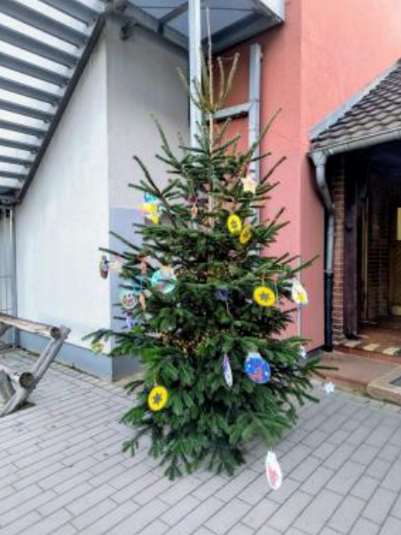Zudem wurde von unserem Förderverein ein Weihnachtsbaum organisiert, der nach und nach von den Klassen geschmückt wurde. Vielen Dank dafür!
