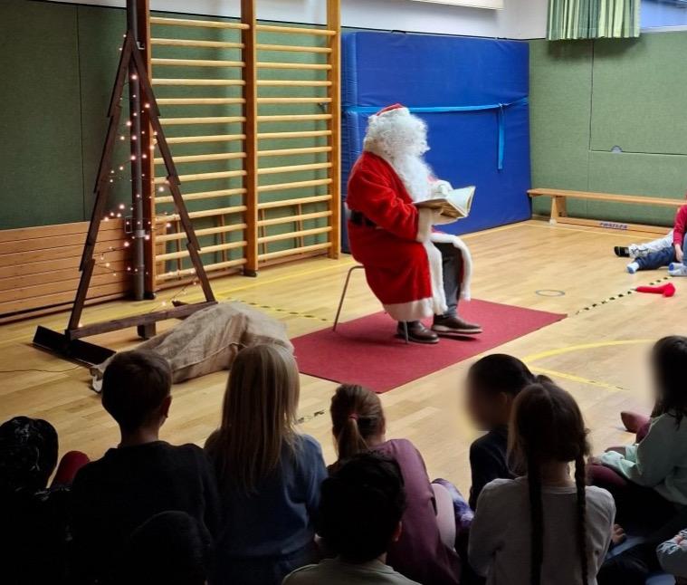 Am Montag nach dem Nikolaustag versammelten sich die Kinder der SEP 1 und 2 in der Turnhalle. Dort erwartete sie eine Überraschung: der Nikolaus kam! Er konnte zu jeder Klasse etwas sagen und brachte sogar für jede Klasse ein Geschenk mit. Die Freude war groß! Als Dankeschön wurden Lieder gesungen und Gedichte aufgesagt.
