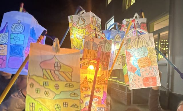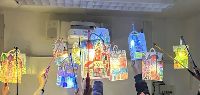 Dieses Jahr fand wieder eine Martinsfeier an der MES statt. Am Vormittag zogen alle Kinder mit ihren liebevoll gestalteten Laternen in die Kirche. Unter den Laternen gab es echte Kunstwerke: Einige waren inspiriert vom Künstler Hundertwasser mit seinen typischen bunten, geschwungenen Formen, andere wurden im Rahmen des Unterrichtsthemas Müll und Recycling aus wiederverwendeten Materialien gebastelt. Nach dem Gottesdienst erhielt jede Klasse einen großen Weckmann, großzügig vom Förderverein gespendet – herzlichen Dank dafür! Der Weckmann wurde gemeinsam geteilt und gegessen, ganz im Sinne der Martinsgeschichte und des Gedankens des Teilens.